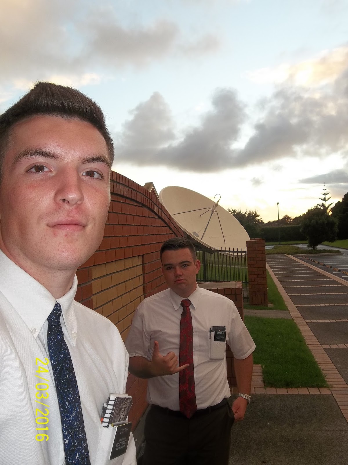 Well we finished off the day and went to bed, then the next morning we woke up and I was saying my prayer and all of a sudden I was like "Oh man... I need to go to the Bathroom!" So I went to the bathroom and did my business I guess and then I came out and I looked at Elder Bass and he was getting off his bed and coming to the Bathroom. Well he also had the "Oh man" feeling, just a bit after me. So we thought oh well there must have been something bad in the dinner last night... So Elder Bass then goes out to the car and comes back in on the phone. I looked at him and he told me to go look at the car because our window was smashed! So I went out and like he said the window was smashed in. It was the little window on the back door. Not one of the roll down ones. But whatever. So nothing was stolen so we were really confused... But we called the mission office and we called the glass place and they came and fixed it. But then I asked Elder Bass who was on the phone. Well he was talking to Elder Maxfield, our Assistant. He was calling to see if our Zone was sick. Well we called around and yes, they were. So apparently the Curry (which everyone ate) at Zone Training was bad. So about 60 missionaries were sick from the bad curry and heaps of missionaries were up all night sick... So that was pretty funny!